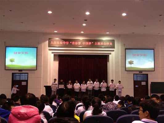 2013年12月6日下午15:30分,我校團(tuán)委在一樓報(bào)告廳召開(kāi)了“青春夢(mèng)中國(guó)夢(mèng)”班會(huì)大賽頒獎(jiǎng)暨主題班會(huì)沙龍活動(dòng)。參加本次活動(dòng)的成員有德育副校長(zhǎng)曹樹(shù)民、學(xué)生工作處主任劉孝偉、學(xué)生工作處副主任劉佩晨、團(tuán)委書(shū)記李桂紅、高一高二青年班主任、副班主任及高一高二學(xué)生干部代表400余人。我校曾于十一月份開(kāi)展“光盤(pán)行動(dòng)”主題班會(huì)大賽,大賽共收到61份作品,其中有21個(gè)班級(jí)表現(xiàn)尤為突出,獲得了優(yōu)勝班級(jí)榮譽(yù)稱(chēng)號(hào)。此次班會(huì)沙龍活動(dòng)既為班會(huì)大賽劃上一個(gè)圓滿(mǎn)的句號(hào),又再次讓學(xué)生體會(huì)同伴教育的力量,通過(guò)學(xué)習(xí)討論交流,有效促進(jìn)我校班會(huì)課程化教育活動(dòng)的開(kāi)展。