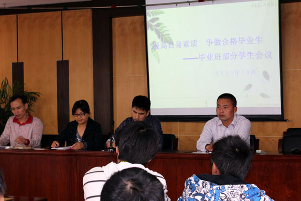 最后,許老師引用溫家寶總理的話,“踏踏實實做人,實實在在辦事。任何一個雙手插在口袋里的人,都爬不上成功的梯子。給人留下一個實在的形象,給自己的成功增添一份夯實的基礎,從實際出發(fā),對自己負責!睂W生提出期望,希望在座學生能夠再接再厲,爭取更大的進步。
