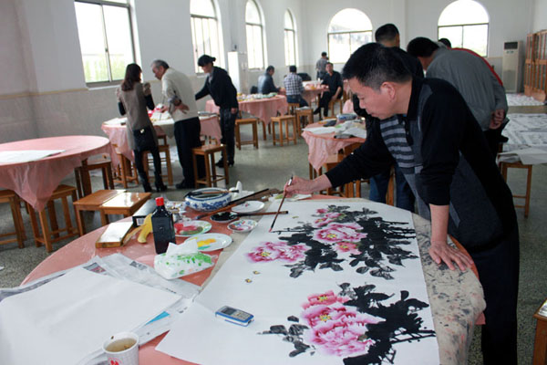 在原市人大副主任、現(xiàn)市美術(shù)家協(xié)會主席楊滌江,市文聯(lián)副主席任少云,張宗祥書畫院院長王學海,市書法家協(xié)會主席陳谷時先生的帶領下,十位全國知名書畫家走進南苑中學。為學校師生現(xiàn)場作畫、書法,展示了中華民族的傳統(tǒng)墨寶。