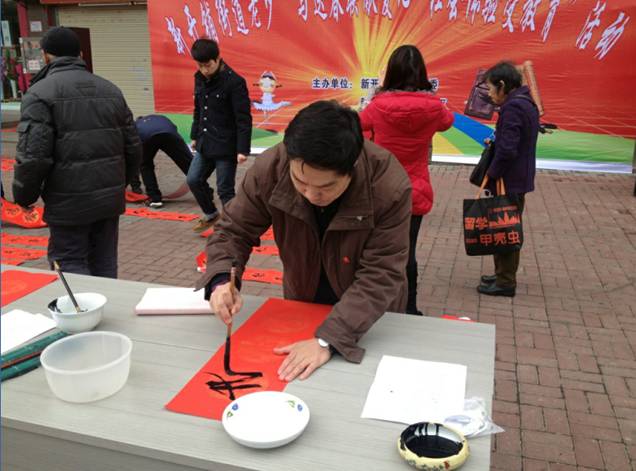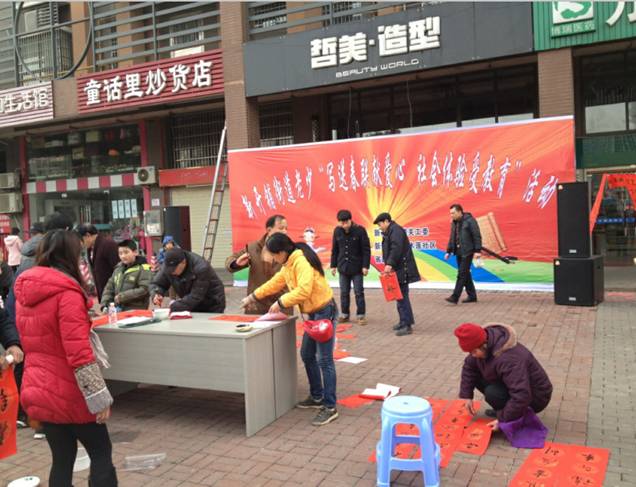 元月16日,學(xué)校黨委書記徐林、達(dá)材黨支部書記吳莉率領(lǐng)部分黨員參加新開鋪街道老少“寫送春聯(lián)獻(xiàn)愛心,社會體驗受教育”活動。