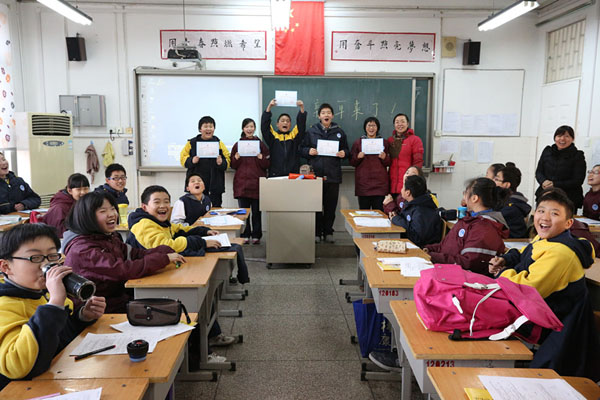 有的班級(jí)組精心制作了視頻,帶領(lǐng)學(xué)生回顧2013,確立2014新目標(biāo);有的班級(jí)組準(zhǔn)備了小型的頒獎(jiǎng)儀式,獎(jiǎng)勵(lì)先進(jìn),樹(shù)立典型;有的班級(jí)組在總結(jié)后精心選擇TED視頻播放,在新年即將來(lái)臨之際對(duì)學(xué)生進(jìn)行勵(lì)志教育;更有學(xué)生別出心裁,為辛苦一年的老師“頒獎(jiǎng)”,表達(dá)感恩之情……校園中處處洋溢著幸福的氣氛和歡樂(lè)的笑聲。