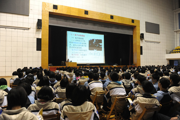 講座中,肖雪夫教授用通俗的語言、具體的例子、翔實的數(shù)據(jù),介紹了原子與原子核、原子核裂變與原子彈、原子核的和平利用——核電站、電離輻射與電離輻射的防護措施、日常生活中的輻射防護知識等,并告誡在場的師生“既不毫無理由地害怕,又不無法無規(guī)”。最后,中國原子能科學研究院輻射安全研究所的專家簡要介紹了家庭住宅長期檢測輻射的方法,并選了20名學生參與測量活動。