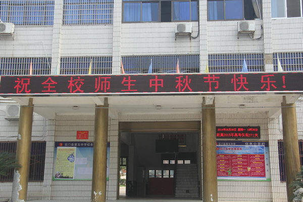9月8日,即農(nóng)歷八月十五,正是我國的傳統(tǒng)中秋佳節(jié)。為響應(yīng)上級“文明過節(jié)”的要求,石門五中文明節(jié)儉地度過了中秋佳節(jié)。句句祝福,聲聲問候。辦公室給每位教職工發(fā)了祝福短信,并通過學(xué)校電子顯示屏送出了祝福標(biāo)語。另外,學(xué)校高三年級利用難得的課余時間,組織了一場籃球比賽,參賽雙方為教工代表隊和高三聯(lián)隊,他們?yōu)楝F(xiàn)場觀眾上演了一場精彩的籃球表演。