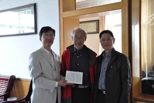 張老非常關心母校的發(fā)展,當看到如今的學校環(huán)境優(yōu)美、生機勃勃,張老非常高興。在學校領導陪同下,一行人來到張老當年就讀的學校原址,原來的教室、宿舍已不見蹤影,學校大半部分已成工地,當看到附近的三五株大樟樹時,一下勾起了張老兒時的回憶,他說這地方原來是一片樟樹林,看到如今只剩這幾棵靜靜的矗立著,一行人無不感慨萬千,唏噓不已。臨行之際,張老贈送一幅長聯(lián),以示對母校眷念。