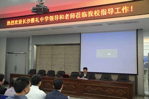 在輕松友好的氛圍中,嘉賓們首先觀看了介紹州民中的視頻短片《夢開始的地方》,然后由州民中和雅禮中學(xué)選派的代表進(jìn)行了交流發(fā)言。州民中高一宏志班班主任李媛蘭老師針對宏志班這個特殊群體作了《對宏志班學(xué)生的情感教育與心理輔導(dǎo)》發(fā)言,李湘黔老師從關(guān)愛學(xué)生的角度談了自己多年班主任的經(jīng)驗體會,作了題為《做學(xué)生生命中的貴人》的主題發(fā)言。雅禮中學(xué)的湯灝、劉清、屈檢嗣三位班主任老師分別作了不同風(fēng)格的發(fā)言,從教育理念、學(xué)生個案、特色創(chuàng)建等角度與同行們作了一次精彩的交流。特別是屈檢嗣老師以“執(zhí)著創(chuàng)新、文化育人”的理念和“三餐四自”的獨門秘籍向教師們介紹如何進(jìn)行“班級文化建設(shè)”,給大家留下了深刻的印象。與會老師會后表示,本次交流活動針對性強,互通有無,增進(jìn)了友誼,開闊了視野,希望這次活動對加強湘西學(xué)校與長沙名校的溝通是一個良好的開端。