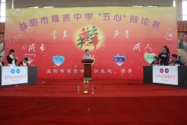 5月18日14︰20,經(jīng)過一個月的精心籌備,由學(xué)校學(xué)生處和團(tuán)委聯(lián)合舉辦的箴言中學(xué)第五屆“五心”辯論賽決賽在體育館如期舉行。本次辯論賽的辯題是“青少年成長更需要掌聲還是更需要嚴(yán)責(zé)”。正方高二代表隊(duì)以“青少年成長更需要掌聲”,反方高一代表隊(duì)以“青少年成長更需要嚴(yán)責(zé)”為觀點(diǎn)展開辯論。最終,經(jīng)過正反雙方激烈的爭辯,通過評委認(rèn)真評議,反方略勝一籌,獲得本次辯論賽的冠軍,正方一辯和反方三辯憑借敏捷的思維和雄辯的口才獲得最佳辯手稱號。