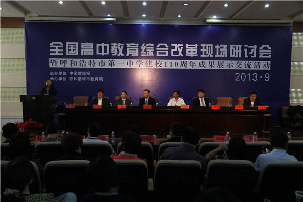 會議流程:一、由中國教育學會常務副會長郭振有進行專家報告。二、呼和浩特市第一中學湯俊文校長進行《變革引領發(fā)展:百年老校的自我更新》主題報告。三、9月29日上午,呼和浩特市第一中學高效課堂觀摩。四、主題沙龍--關于教育現代化的思考。由中國教師報總編助理、編輯部主任李炳亭主持沙龍;沙龍嘉賓有:河北省廊坊市教育局副局長兼廊坊一中校長何志強、山西省澤州一中校長李海勇、武漢市洪山高中校長胡體樹、河南省衛(wèi)輝高中校長李憲文、呼和浩特市土默特中學校長李文革。五、主題沙龍二--第三代課改的探索與思考。由中國教師報課改研究周刊主編褚清源主持沙龍,沙龍嘉賓有:河南省鄭州市102中學校長蔡明生、陜西省宜川中學校長孫明賢、河北省清河縣揮公實驗中學校長張海晨、中國教師報課改專家團首席顧問杜金山、湖北省荊州市北門中學校長劉基華。