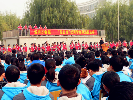表彰會(huì)開始,過夏勝校長宣布了本次“假日杯”的所有獲獎(jiǎng)?wù)呙麊,并由胡校長和全體中層領(lǐng)導(dǎo)為獲獎(jiǎng)?wù)哳C發(fā)獎(jiǎng)杯和佩戴光榮花。我們深知這份榮耀不僅屬于這些優(yōu)秀學(xué)生的,更是屬于在背后默默付出的所有優(yōu)秀老師們,為了表達(dá)這份感謝,活動(dòng)過程中,獲獎(jiǎng)的同學(xué)們都把自己手中的鮮花獻(xiàn)給了他們敬愛的老師們!連續(xù)四年蟬聯(lián)冠軍,如此傲人的成績,明年還能創(chuàng)造奇跡嗎?初一優(yōu)秀學(xué)生代表給我們帶來了回答,相信明年他們同樣也能突破自我,為樹蘭帶來榮耀!活動(dòng)最后,胡校長發(fā)表重要講話,本次表彰會(huì)在同學(xué)們的熱烈掌聲中圓滿結(jié)束!