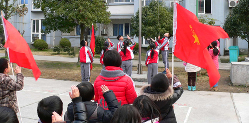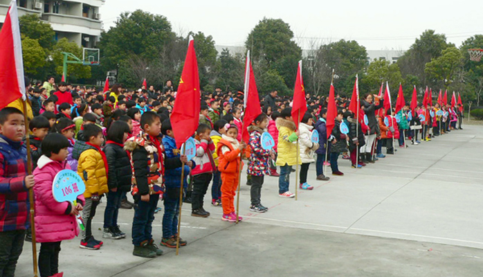 開學(xué)典禮開始,首先是莊嚴(yán)的升旗儀式。由黃校長(zhǎng)親自給學(xué)校國(guó)旗隊(duì)授旗,在嘹亮的國(guó)歌聲中,新學(xué)期的第一面五星紅旗冉冉升起。