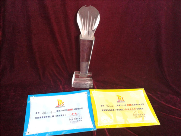 我校健美操隊(duì)成立于2008年,在學(xué)校領(lǐng)導(dǎo)的大力支持和關(guān)愛(ài)下,在健美操隊(duì)教練付紅梅老師的嚴(yán)格管理和悉心指導(dǎo)下,全體健美操隊(duì)隊(duì)員們發(fā)揚(yáng)埋頭苦練,努力拼搏的精神,短短幾年時(shí)間,我校健美操隊(duì)煥發(fā)出勃勃生機(jī),捷報(bào)頻傳,取得了累累碩果。先后獲得2010年全國(guó)校園健身操啦啦操大賽二等獎(jiǎng),山東省健康活力大賽團(tuán)體第八名,2013年濟(jì)南市健身操大賽總成績(jī)第一名,2014年濟(jì)南市系列校園青春健身操比賽健身操和啦啦操特等獎(jiǎng)等佳績(jī)。
