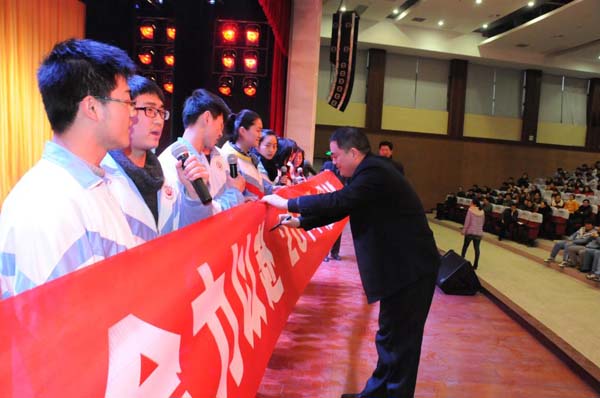 朱士東校長作了重要講話,他先向辛勤工作的全體高三教師和孜孜以求的全體畢業(yè)生表示真誠的問候,希望全體高三同學抓緊時間、講究方法、注重效率、調整心理,確保2014年高考取得優(yōu)異成績。