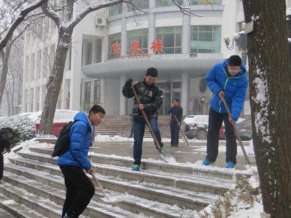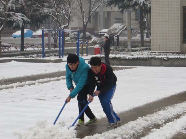 自覺到校掃雪,已是七中師生歷來的傳統(tǒng),每年雪后初晴的校園里總是熱熱鬧鬧、一片投身勞動的歡快場景,今年也不例外,老師和同學們忙碌的身影,成為冬日校園里最美的風景。從操場到辦公區(qū),從辦公區(qū)到教學區(qū),處處都有師生們奮戰(zhàn)掃雪的身影,經(jīng)過歷時2小時的清掃,學校的主要道路上的積雪都被清理干凈,連運動場上的積雪也被清理完畢。雖然勞動讓師生們大汗淋漓,但是“家”的變化讓大家感受到了團結就是力量,愛我校園,我們在行動……
