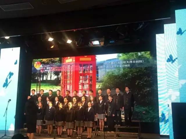 演繹的二首《祖國不會忘記》和《為了更廣闊的明天搏擊翱翔》表達(dá)了每一位建平人對祖國以及母校的熱愛!雖然其他九所學(xué)校中有八所為大學(xué)并且有著非常精彩的演出和表現(xiàn)能力,但是我們建平人依舊沒有怯場,沉著冷靜將建平人的自信以及風(fēng)采用最雄壯最美麗的歌聲展現(xiàn)出來,贏得了臺下嘉賓及觀眾們的熱烈掌聲!