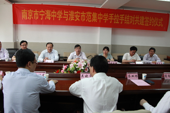 吳局長、朱局長對兩校結(jié)對發(fā)表了意味深長的講話,我們相信,有兩市領(lǐng)導的關(guān)心呵護和大力支持,南京市寧海中學和淮安市范集中學手拉手結(jié)對共建活動定會取得圓滿成功!一定不會辜負省、市領(lǐng)導的關(guān)心!
