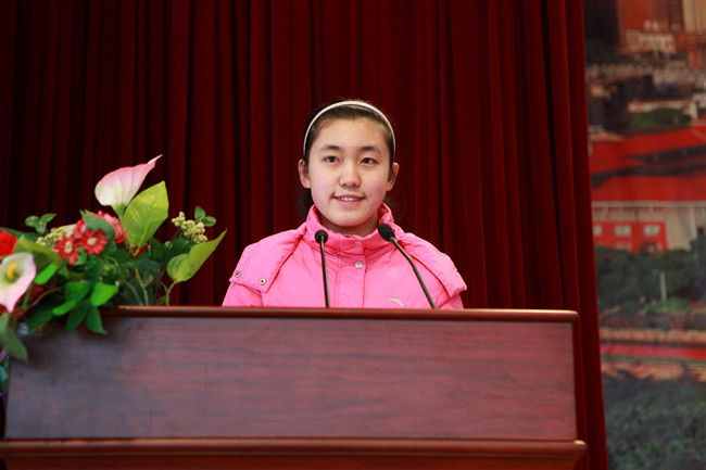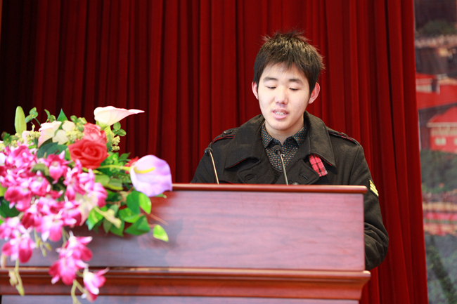 在2013年度江蘇省學(xué)科奧林匹克競賽中榮獲數(shù)學(xué)、物理、化學(xué)、生物、信息學(xué)五個省級一等獎、其中三項是國家一等獎的張子筠同學(xué),作為陳蔭川競賽類獎學(xué)金的代表上臺發(fā)言。她的發(fā)言重點(diǎn)談如何處理好競賽與高考的關(guān)系,如何有效利用自由支配的時間,使在座同學(xué)深受啟發(fā)。