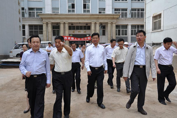 其間,校長吳裕民向陳市長、馬局長就學校校門安全改造、體藝綜合樓建設(shè)、九十周年校慶等工作做了匯報。陳市長對我校校園改造的一系列工作做出高度評價,并就校慶工作做出重要指示。他強調(diào),學校校慶工作要搞好,上馬街老校門的修復(fù)工作更要做好,進山中學要以校慶為契機,建設(shè)校園文化,聚人氣,凝精神。臨行之時,陳市長還指出,影響學校形象的廁所一定要移除,希望全校上下共同努力,把各項工作搞上去,九月校慶之時,再來看進山。