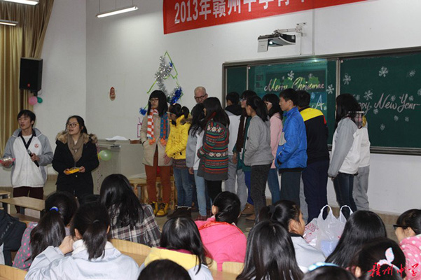隆冬的贛中校園,處處洋溢著歡聲笑語,英語伴隨歌聲蕩漾在校園的每一個(gè)角落。2013年12月25-27日,我校隆重舉辦了第一屆英語文化節(jié)。自學(xué)校開辦以來,我校著力打造外語教育品牌,以雙語教學(xué)促進(jìn)學(xué)校更快更好地發(fā)展。2011年9月,經(jīng)上級批準(zhǔn),我校增掛贛州外國語學(xué)校校牌。2012年7月,我校被列為江西省普通高中外語教育特色發(fā)展試驗(yàn)首批試點(diǎn)學(xué)校。英語文化節(jié)作為我校外語特色的一大亮點(diǎn),受到了學(xué)校領(lǐng)導(dǎo)的高度重視和全校師生的熱烈歡迎。其內(nèi)容豐富多彩,形式多種多樣,為學(xué)生了解異域文化提供了一個(gè)很好的平臺,更極大地提高了學(xué)生學(xué)習(xí)外語的興趣,營造了一個(gè)很好的學(xué)習(xí)氛圍,也必將推動我校外語特色教學(xué)再上新臺階。本屆英語文化節(jié)由初中年級英語游園活動、英語俱樂部圣誕節(jié)特別活動、高一年級英語背誦比賽和高二年級英語演講比賽組成,學(xué)校領(lǐng)導(dǎo)出席了活動并觀看了比賽。我校首屆英語文化節(jié)取得了圓滿成功!