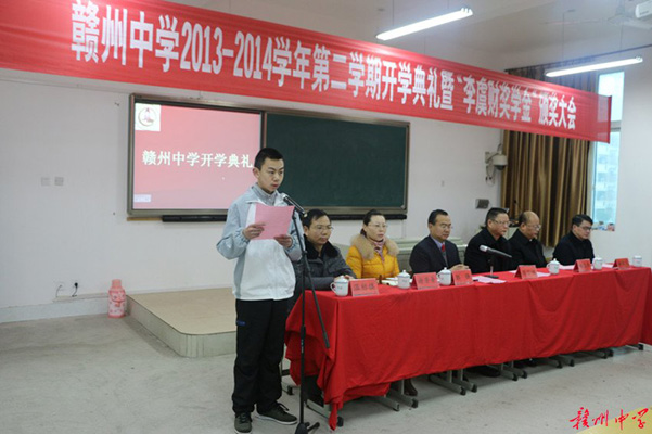 本次開學(xué)典禮暨“李虞財獎學(xué)金”頒獎大會隆重而催人奮進,激勵全體師生在新學(xué)期中以積極的心態(tài)、良好的行為全身心地投入到學(xué)習(xí)、工作和生活中。相信,良好的開端必定能帶來巨大的成功,在全體師生不懈的努力下,贛州中學(xué)一定會贏得更加燦爛輝煌的明天。