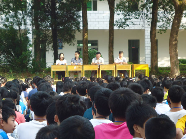 九月四日早晨,高一年級開學(xué)典禮在籃球場正式開始。會議由蹲點行政邱建華副校長主持,鄧駿峰校長到會致辭,對高一新生的到來表示了熱烈的歡迎,并向同學(xué)們介紹了一中情況,希望同學(xué)們志存高遠,矢志不移;珍惜時間,奮發(fā)有為;率身垂范,砥礪品格,為一中爭光。