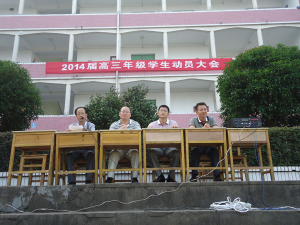 在這里,我們看見同學(xué)們奮斗的身影。學(xué)生代表劉崇、吳菲、李建攀發(fā)言說他們要用自己的夢(mèng)想喚醒每一天的腳步,用每一天的腳步抒寫那2014年6月的不朽篇章。他們表示縱使鏖戰(zhàn)浩瀚的題海也定會(huì)“衣帶漸寬終不悔”,即使跋涉在漫漫長路也一定會(huì)上下而求索、永不言棄。他們將用自信、用奮斗去迎接六月的驕陽。