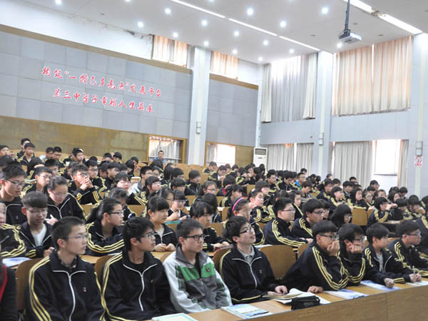 這些學(xué)生是三校高一聯(lián)合實驗班的學(xué)生,來自嘉興三中、嘉興四高、嘉興五高三所學(xué)校。本次講座是三校聯(lián)合實驗班系列活動的一個重要內(nèi)容,利用園區(qū)聯(lián)合培養(yǎng)的資源優(yōu)勢,在三校教師聽課評課的同時,邀請市教育學(xué)院教育科研和信息處吳麗萍副處長,給學(xué)生作了“高中生職業(yè)生涯規(guī)劃”,目的是通過講座,讓同學(xué)們“站得高,看得遠,走好腳下每一步!