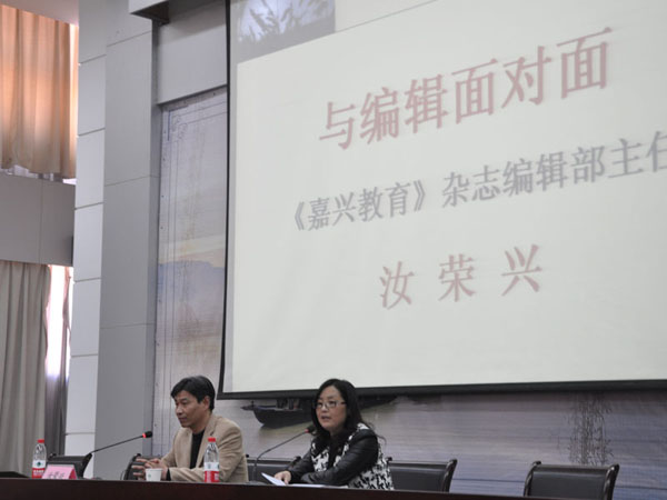 汝榮興老師一開(kāi)頭就對(duì)自己沒(méi)用PPT進(jìn)行講座作了幽默的解釋,引起了教師的特別興趣:“我不用PPT,因?yàn)樽鲞@樣的事情實(shí)在是我太熟悉不過(guò)的事了,作為《嘉興教育》雜志的編輯,每天看的、改的就是我們教師的文章,可以說(shuō),我對(duì)我們老師的論文寫(xiě)作有很多的了解和認(rèn)識(shí)!彼麌@“教師論文寫(xiě)作中存在的不少問(wèn)題”這個(gè)中心,結(jié)合具體的案例分析了教師寫(xiě)作論文中存在的需要認(rèn)真審視和解決的弊端。他認(rèn)為教師論文就是寫(xiě)教師教育教學(xué)的實(shí)踐,自己教育教學(xué)過(guò)程中有經(jīng)驗(yàn)的東西,有感受有體會(huì)或者有問(wèn)題的東西都是教師論文的寫(xiě)作對(duì)象,可是在具體寫(xiě)作過(guò)程中,不少老師在內(nèi)容、結(jié)構(gòu)和語(yǔ)言三方面還存在這樣那樣的問(wèn)題:從內(nèi)容來(lái)說(shuō),不是內(nèi)容太實(shí),就是內(nèi)容太虛或者內(nèi)容太多;從結(jié)構(gòu)上來(lái)說(shuō)看,作為論文寫(xiě)作過(guò)程提出問(wèn)題、分析問(wèn)題和解決問(wèn)題的基本思路不夠清晰,導(dǎo)致結(jié)構(gòu)不完整,內(nèi)容沒(méi)條理,或者形式太死板;而在語(yǔ)言上還出現(xiàn)不通順、不得體、不準(zhǔn)確的情況。汝老師認(rèn)為,論文寫(xiě)作其實(shí)并不難,教師要做有心人,遇到教育教學(xué)要多思考,勤積累,要善于學(xué)習(xí)先進(jìn)的教育教學(xué)理論,“與其偷其意,莫如偷其氣”,要努力做一個(gè)有思想、能反思的好教師。