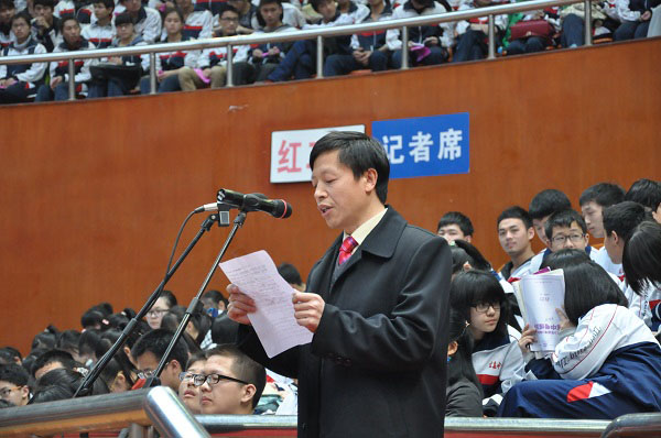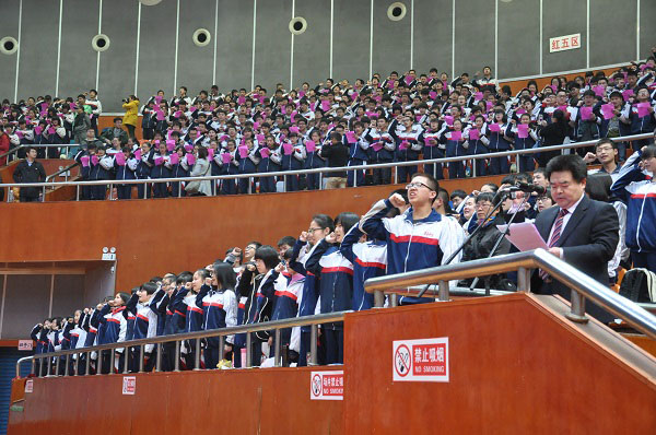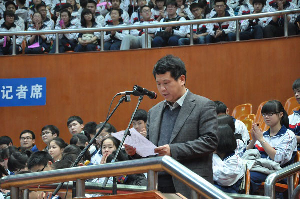 2月27日下午,一年一度的高考百日誓師大會(huì)在市體育中心隆重舉行,校領(lǐng)導(dǎo)和全體高三師生參加。在誓師大會(huì)上,陳少平校長發(fā)表了熱情洋溢的講話,他鼓勵(lì)即將奔赴高考戰(zhàn)場的同學(xué)們保持樂觀自信的心態(tài),針對(duì)自己的學(xué)習(xí)情況做好規(guī)劃,并希望同學(xué)們務(wù)必踐行勤奮努力的精神。隨后,高三年級(jí)熊榮輝、鄧子剛主任代表高考年級(jí)發(fā)言,祝福同學(xué)們?cè)诟呖贾腥〉煤贸煽儭8呷處煷硇苡⒖、莫渺泉以及學(xué)生和家長代表也分別發(fā)言。在廣大師生的積極參與下,誓師大會(huì)取得圓滿成功。