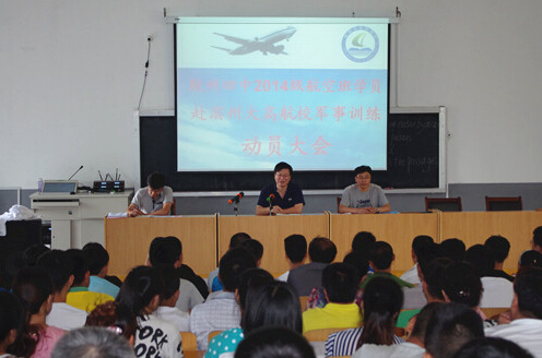 動員會上,高一級部主任王悅巖首先對航空班學員及家長的到來表達了祝賀和歡迎,并就7月20日將要開始的赴大高航校軍事訓練事宜進行了動員和部署。接下來,薛斌校長向學員及家長普及了航空班成立的背景及意義,并表示學校將以好環(huán)境、好師資、好質量、好品牌贏得社會與家長、學生的信賴,使學校的航空特色教育工作再上新臺階。會后,學校向航空班學員發(fā)放了航空班夏季服裝,并邀請學員及家長參觀了航空班學員的學習、閱覽、訓練場地,了解了學校的航空特色文化。