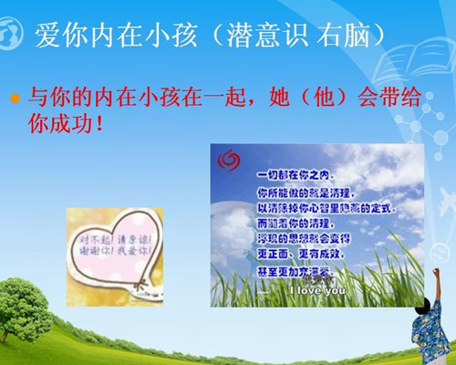 心理課上老師教給同學們一個最簡單的解決問題的辦法。說簡單真簡單,就是用四句大家常說的文明禮貌用語“對不起,請原諒,謝謝你,我愛你”來解決我們在生活中學習上遇到的問題。我們一些同學一開始真的是似信非信,一些同學說他們的家長在學習這個方法。老師說種方法的傳人是美國心理學家修·藍博士,此法源自古老的夏威夷療法,可以在自己內在解決外在世界發(fā)生的所有問題。老師還旁征博引,用老子《道德經》中“為學日益,聞道日損,損之又損,以至于無為,無為而無不為”來說明這個方法的可信,也借用霍金斯的能量圖來形象地講解這個理論。同時,在課上老師帶領我們實踐,也建議我們學以致用,在平時的生活中遇到問題時常常體會,感受。經過一個學期的實踐,許多同學感覺這個方法還真的很神奇,每每都有效。您也不妨試試!读銟O限》系列書和網站有介紹這個方法的詳細內容。讓我們一起學習,凈化自己的靈魂,實現自己的夢想。