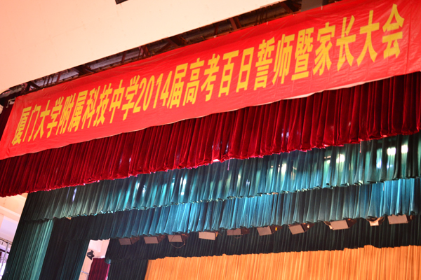 100天! 距離高考只有100天!在這個(gè)特殊的日子里,為激勵(lì)學(xué)生奮力前行,2014年2月28日下午,廈門大學(xué)附屬科技中學(xué)高三全體師生和家長(zhǎng)在廈門大學(xué)建南大禮堂隆重舉行“百日誓師動(dòng)員大會(huì)”。