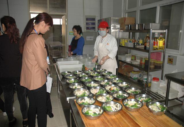 會議采取集中培訓和現(xiàn)場檢查相結(jié)合的方式進行。會上,市食品藥品監(jiān)督管理局監(jiān)管科的專家給食堂安全監(jiān)督員發(fā)放了資料并進行了細致的培訓和講解,同時結(jié)合現(xiàn)場檢查,讓學生家長在較短的時間內(nèi)掌握了學生食堂監(jiān)督檢查工作的重點和要求。檢查結(jié)束后,市食藥局的領(lǐng)導和學生家長對我校學生食堂管理工作給予高度評價,同時也提出了更高的要求。市食品藥品監(jiān)督管理局還頒發(fā)了餐飲等級“A”級優(yōu)秀標識。最后,尉選民副校長代表學校領(lǐng)導和食堂全體工作人員承諾:一定要建一個讓學生滿意、家長放心的學生食堂,爭創(chuàng)“省級示范食堂”和“全國青年文明號”。
