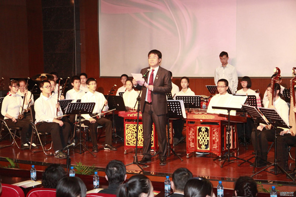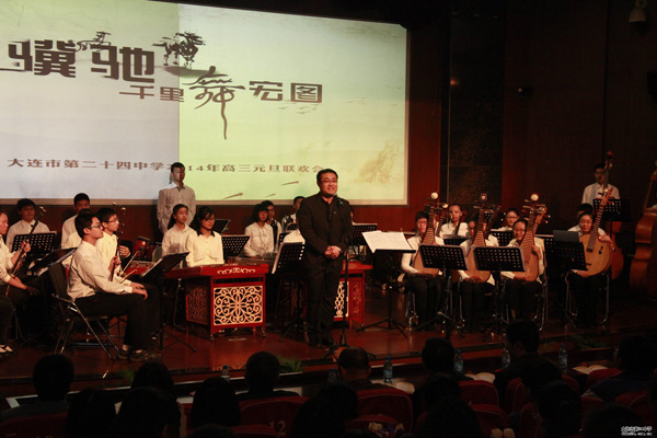 2013年12月31日14:00點,我校師生舉辦了新年慶;顒樱渲懈咭桓叨昙墳榻淌覂(nèi)聯(lián)歡,高三年級于報告廳禮堂舉行了2014“驥馳千里舞宏圖”元旦聯(lián)歡會,校領(lǐng)導(dǎo)、高三師生享受了一場精彩的盛會。聯(lián)歡會開始前,黃校長進行了2014新年致辭,言語中飽含諄諄教誨和熱切盼望。隨后在民樂團悠揚的合奏《羽調(diào)》中聯(lián)歡會拉開了序幕,節(jié)目異彩紛呈,有舞團的熱辣炫舞、獨唱的華美歌聲,有班級原創(chuàng)歌曲帶來的感動,有教師精心準(zhǔn)備的祝福節(jié)目,以及相聲小品的笑料包袱為大家?guī)頍o與倫比的驚喜。這是高三學(xué)子在校的最后一次元旦聯(lián)歡,精彩的表演、搖動的熒光棒是學(xué)子心中最美的記憶。