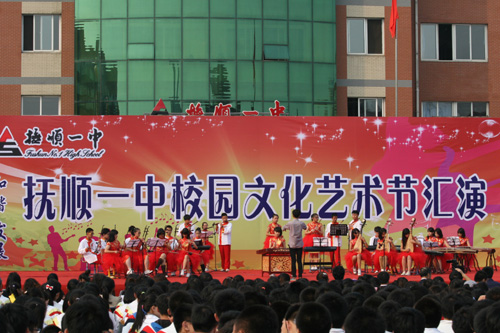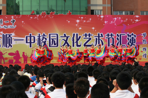 2013年9月28日下午3時,在喜迎我校60華誕的同時,我校也迎來了第五屆校園文化藝術節(jié)。在一個多月的緊張籌備后,本次藝術節(jié)取得了圓滿成功。17個優(yōu)秀文藝節(jié)目參加了匯報演出。演出在輪滑社團的精彩表演后正式拉開序幕。期間,有富有激情的獨唱表演《紅旗飄飄》,有頗具特色的民樂演奏,有吸人眼球的悠悠球展示,也有精彩紛呈的中外民族舞。最后在《撫順一中校歌》大合唱中圓滿地落下了帷幕。本次校園文化藝術節(jié)為促進學生全面發(fā)展和展示藝術才華搭建了平臺,各社團的參與演出更好地體現(xiàn)了同學們豐富多彩的校園生活!敖裉煳乙砸恢袨闃s,明天一中以我為榮”,騰飛中的撫順一中將培養(yǎng)出更多全面型人才,一中的明天會更加燦爛美好!