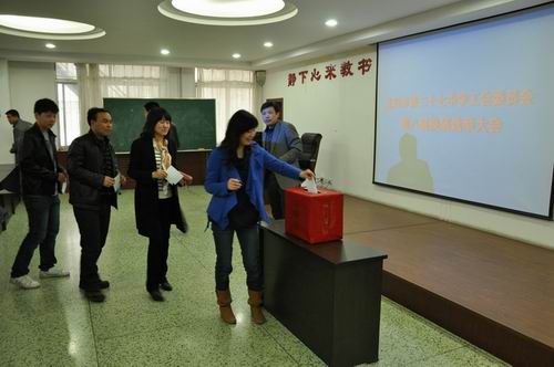 2012年4月19日下午,沈陽(yáng)市第二十七中學(xué)工會(huì)第八屆委員會(huì)換屆選舉大會(huì)在校三樓報(bào)告廳召開(kāi),教職工代表46人到會(huì),本著公開(kāi)公正的原則認(rèn)真履行了選舉權(quán),以無(wú)記名投票方式選舉產(chǎn)生了林潔、何中君、李繼強(qiáng)、韓正起、劉一娜、李雅文、和閆友益七位同志組成的新一屆工會(huì)委員會(huì)。林潔同志當(dāng)選為第八屆工會(huì)委員會(huì)主席。