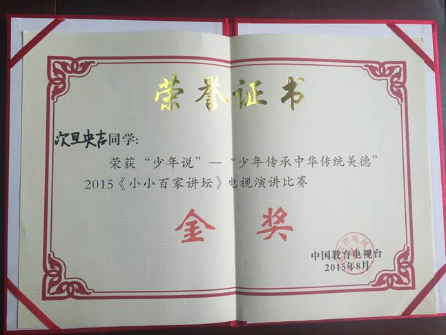 由教育部和全國青少年校外教育工作聯(lián)席會議辦公室主辦,教育部基礎(chǔ)一司與中國教育電視臺聯(lián)合承辦的“少年傳承中華傳統(tǒng)美德”之“小小百家講壇” 比賽于8月25日落下帷幕,拉薩中學(xué)高二年級次旦央吉同學(xué)成績突出,勇奪比賽高中組金獎,拉薩中學(xué)獲比賽優(yōu)秀組織獎。