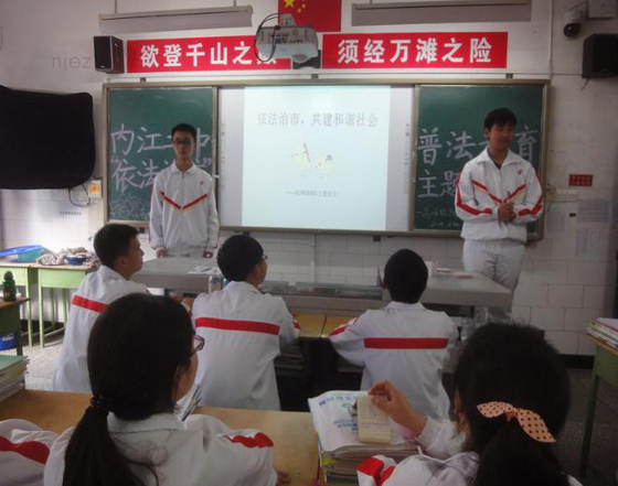 為貫徹落實(shí)中央、省、市關(guān)于依法治市的文件精神,進(jìn)一步提高學(xué)生的法律素質(zhì)和法制觀念,4月14日,內(nèi)江二中在全校各班開展了依法治市主題班會活動。