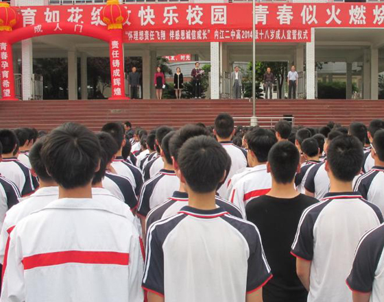 為增強(qiáng)成人意識、公民意識和責(zé)任意識,5月6日,內(nèi)江二中1042名高三學(xué)子舉行了“懷理想責(zé)任飛翔、伴誠信感恩成長”成人宣誓儀式。學(xué)校領(lǐng)導(dǎo)以及老師、學(xué)生家長代表一同見證了高三學(xué)子這邁向成人的重要時刻。