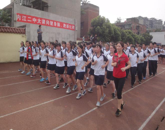 為貫徹執(zhí)行國(guó)家教育部、內(nèi)江市教育局關(guān)于“中小學(xué)生每天保證一小時(shí)體育鍛煉”的規(guī)定,樹(shù)立“我運(yùn)動(dòng),我陽(yáng)光,我運(yùn)動(dòng),我健康”的意識(shí),內(nèi)江二中于5月7日舉行了健身操、跑步操比賽。同學(xué)們和著優(yōu)美的旋律,精神飽滿,動(dòng)作規(guī)范,將健身操的力與美淋漓盡致地展現(xiàn)出來(lái),給人以美的享受。跑步操,同學(xué)們伴隨著強(qiáng)勁有力的旋律,步調(diào)一致,呼號(hào)聲整齊嘹亮,響徹校園,整個(gè)運(yùn)動(dòng)場(chǎng)洋溢著青春、熱烈的朝氣,展現(xiàn)出了內(nèi)江二中學(xué)生昂揚(yáng)向上的精神面貌和靚麗的青春風(fēng)采。