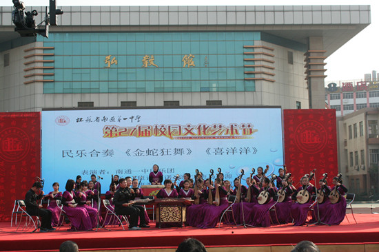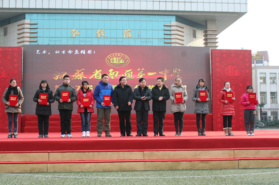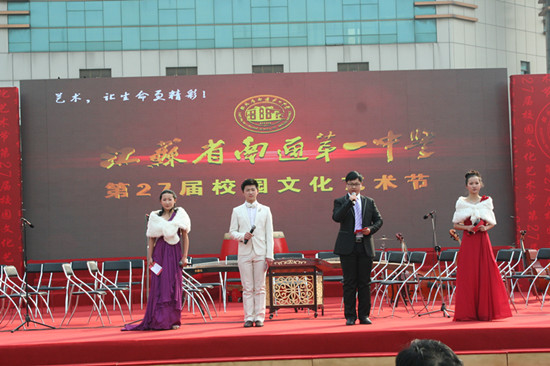 2013年12月28日,我校在操場隆重舉行第27屆校園文化藝術(shù)節(jié)閉幕式暨文藝匯演。成錦平校長在閉幕式上致辭,陳文輝書記代表學(xué)校公布了學(xué)校剛評選出的十件大事。市教育局副局長樊建清,體衛(wèi)藝處處長朱寧,基教處副處長陳斌、還有我校的共建單位,來自任港街辦、交警一大隊、任港派出所、崇川消防大隊孩兒巷中隊的各位領(lǐng)導(dǎo),以及我們的兄弟學(xué)校:南通中學(xué)、通大附中、南通中專、西藏民族中學(xué)、啟秀中學(xué)、第一初中、市二中、市三中、小海中學(xué)、旅游中專的各位領(lǐng)導(dǎo)。另外,還有部分學(xué)生家長應(yīng)邀參加了今天的活動。