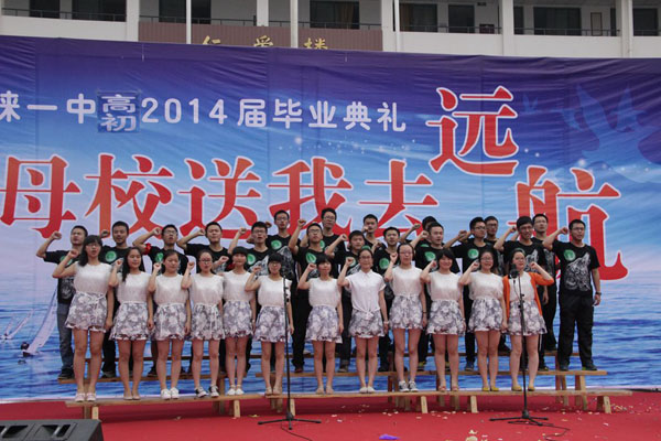 2014年5月23日,是一個令人難忘的日子。我校全體師生在廣場上隆重舉行高初中2014屆畢業(yè)典禮。伴隨著抒情、憂傷的歌曲,以“校園激情飛揚,學子揚帆遠航”為主題的畢業(yè)典禮拉開了帷幕,為畢業(yè)班的同學們成功的完成學業(yè),為即將奔赴高考考場的學子們壯行助威。