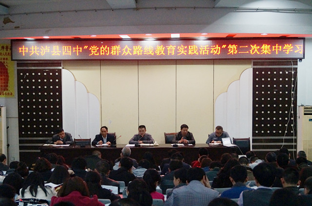 3月30日晚,瀘縣四中黨的群眾路線教育實(shí)踐活動(dòng)第二次集中學(xué)習(xí)在學(xué)校校會(huì)議舉行。黨委書(shū)記、校長(zhǎng)晏文斗同志主持學(xué)習(xí),全體黨員、教職員工參加了學(xué)習(xí)。