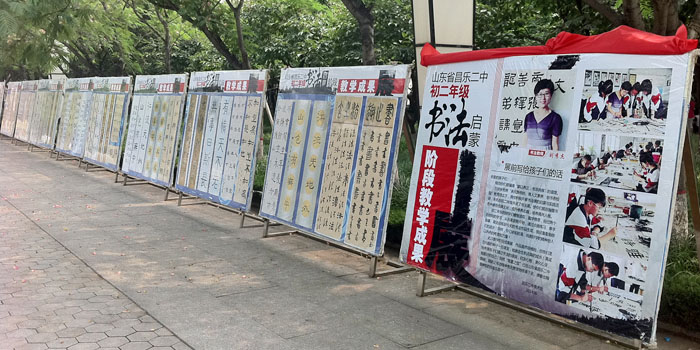 2014年6月26日,我校在金鑰匙廣場(chǎng)成功舉辦初二級(jí)書(shū)法啟蒙階段成果展。