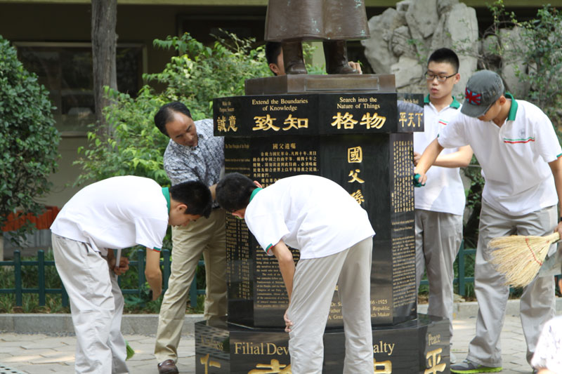 黨委書(shū)記楊長(zhǎng)寨親自參與到活動(dòng)中,與同學(xué)們一起擦拭雕塑、打掃衛(wèi)生,并積極向周?chē)氖忻裥麄魑倚=逃虒W(xué)工作,活動(dòng)獲得了市民的一致好評(píng)。宣傳環(huán)保事業(yè),傳遞青春正能量,讓我們一起努力,在進(jìn)一步做好國(guó)際生態(tài)學(xué)校的奮斗征程上再立新功!