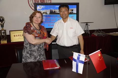 在接下來的簽約儀式上,雙方校長均表示出對于彼此學(xué)校的興趣,希望能夠通過進(jìn)一步的溝通,加深對于彼此的了解。最終我校與芬蘭Valkeakoski Tietotie高中簽訂了友好學(xué)校的協(xié)議,這必將為兩校架起技術(shù)、教育和文化合作的橋梁,使兩校學(xué)生得到更多了解異國文化的機(jī)會,豐富學(xué)生的人生經(jīng)歷。