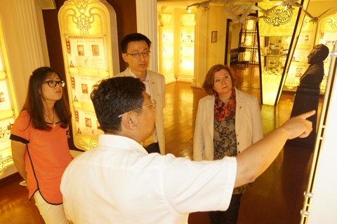 在副校長田山的引領(lǐng)下,Jaana校長一行人參觀了我校的校史館。期間,Jaana校長對我校的百年發(fā)展歷史產(chǎn)生了濃厚的興趣。隨后,Jaana校長介紹了芬蘭的教育體制以及Valkeakoski Tietotie高中的概況。在友好互動的氛圍里,田山副校長與Jaana校長就兩校的教育理念交換了意見并達(dá)成了共識。之后Jaana校長一行人參觀了我校的教學(xué)樓和辦公樓,并且走進(jìn)課堂,感受中國教師的授課風(fēng)采。
