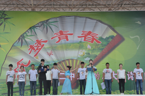 5月25日,我校第三屆“五月的風(fēng) 筑夢(mèng)青春”大型詩(shī)歌朗誦會(huì)在學(xué)校操場(chǎng)舉行,22個(gè)節(jié)目90余位選手登臺(tái)表演, 2000余名師生觀看了演出。同學(xué)們精神飽滿,激情朗誦,表達(dá)了對(duì)青春的贊頌,對(duì)夢(mèng)想的執(zhí)著,富有激情和感染力的朗誦引起同學(xué)們一陣陣喝彩,掌聲此起彼伏。這些詩(shī)歌有的是經(jīng)典名篇,有的是自己的原創(chuàng)作品,感染力強(qiáng);有的是一人朗誦吟唱,有的是多人配樂(lè)表演,有的還配有舞蹈,形式多樣,很好體現(xiàn)了作品的韻味和優(yōu)美的意境,帶給人一種高品位的精神享受,營(yíng)造了濃厚的“詩(shī)意”氛圍。