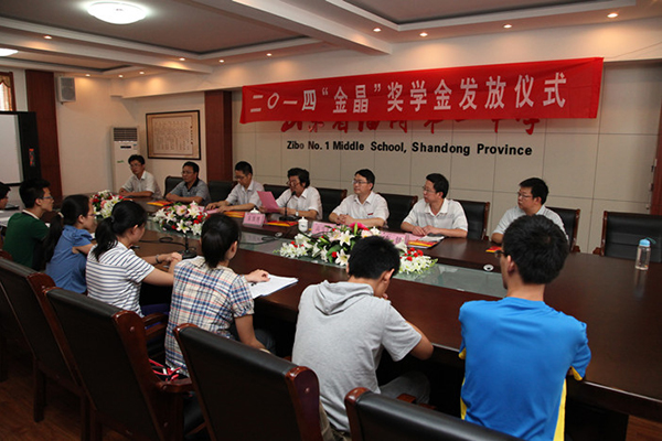 山東淄博一中— —我校隆重舉行2014“金晶”獎(jiǎng)學(xué)金發(fā)放儀式