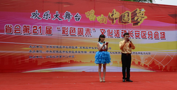 2014年4月26日上午由長(zhǎng)安區(qū)委、區(qū)政府主辦,長(zhǎng)安區(qū)為體局、區(qū)文化館承辦,石家莊市第十二中學(xué)協(xié)辦的“歡樂大舞臺(tái)、唱響中國(guó)夢(mèng)”暨省會(huì)第二十一屆“彩色周末”文化活動(dòng)華彩閉幕。