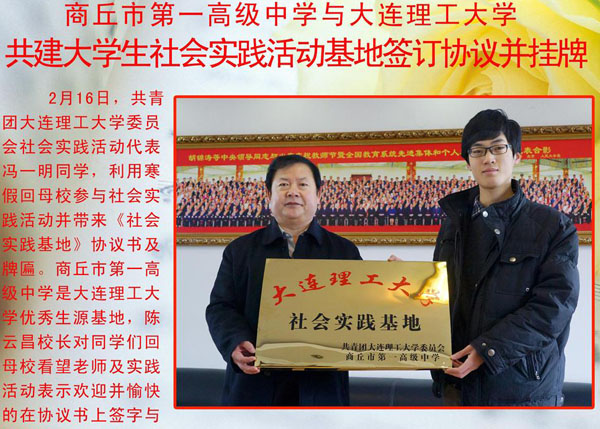 河南商丘第一高級中學(xué)— —商丘一高與大連理工大學(xué)共建大學(xué)生社會實踐活動基地簽訂協(xié)議并掛牌