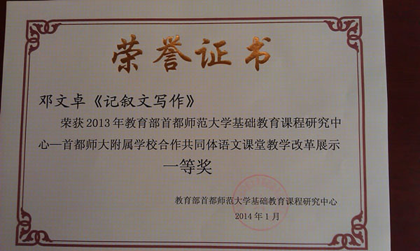 我校語文教研組在特色展示評比中獲得一等獎;鄧文卓、歐陽苗老師在課堂展示活動中獲得一等獎,張懷民老師獲得優(yōu)秀獎。在此,向獲獎教研組和教師表示熱烈的祝賀!